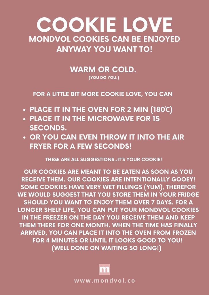 Below you will see our cookie love cards with some guidelines on how to enjoy your cookies 🤩