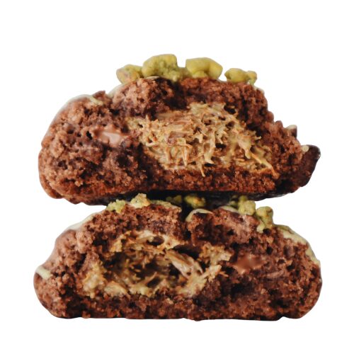 Brown, sweetened hazelnut cocoa inside a cookie.